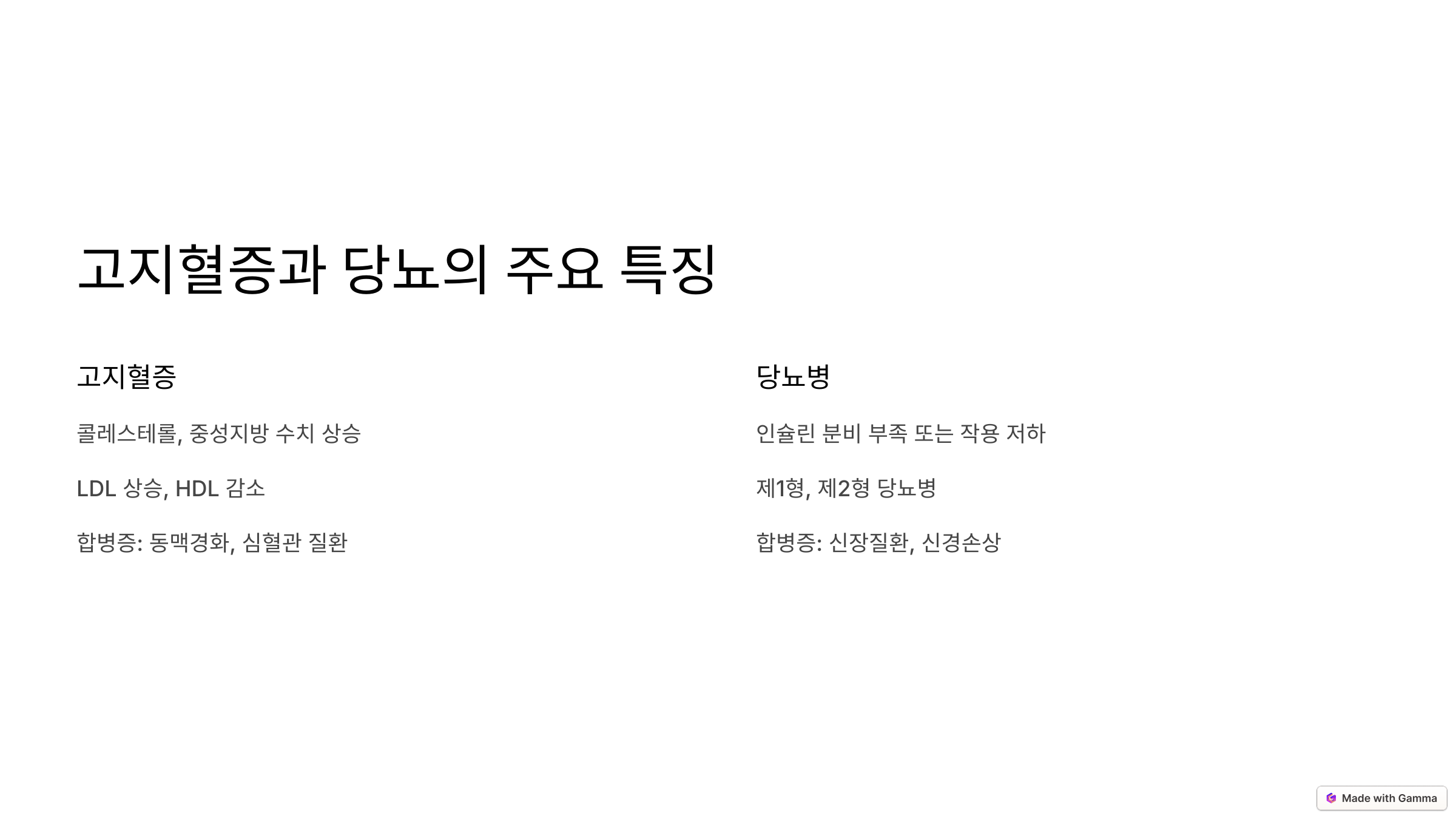 1. 고지혈증과 당뇨의 주요 특징 🌡️