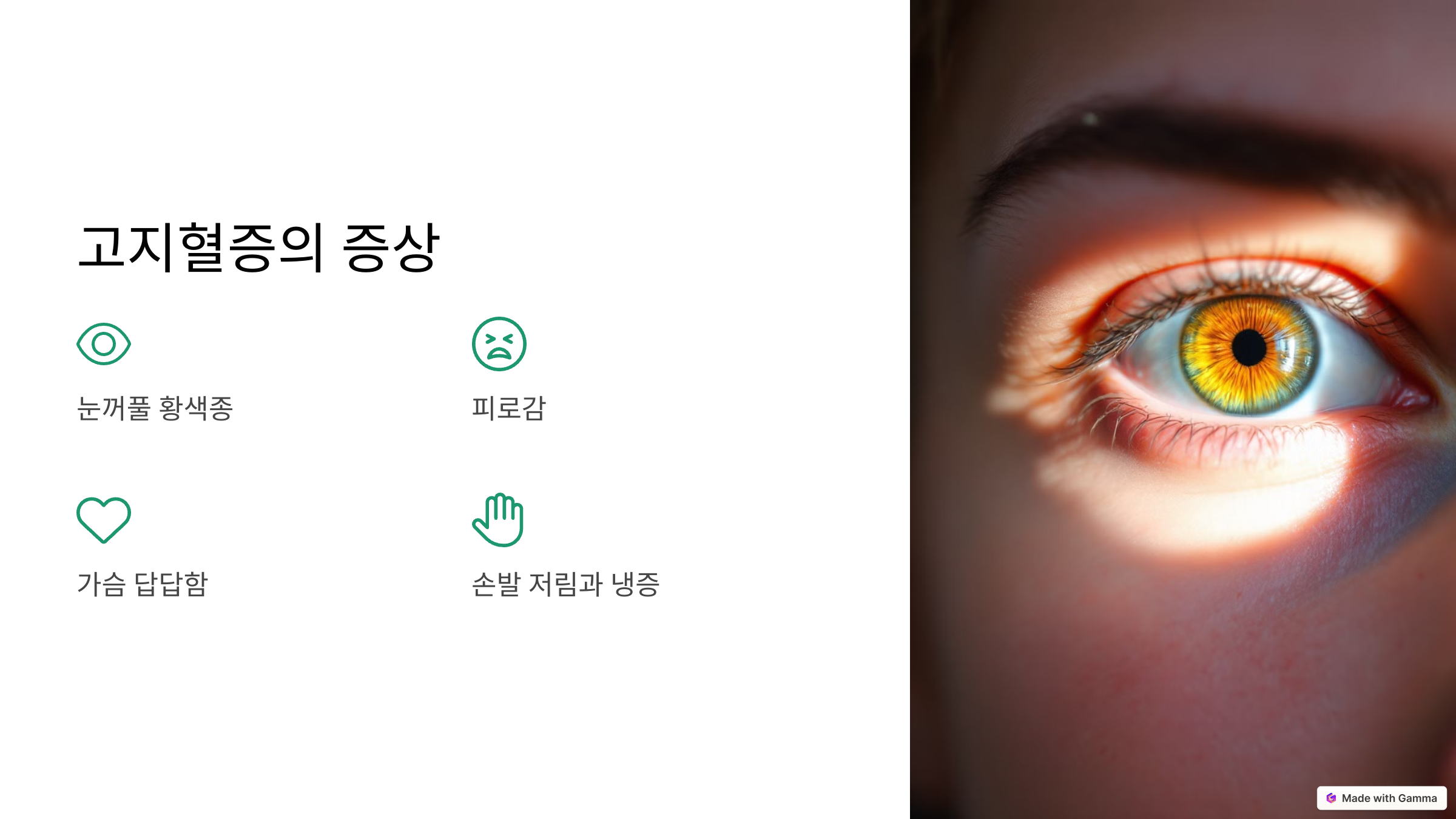 - 눈꺼풀의 황색종: 노란색 반점.