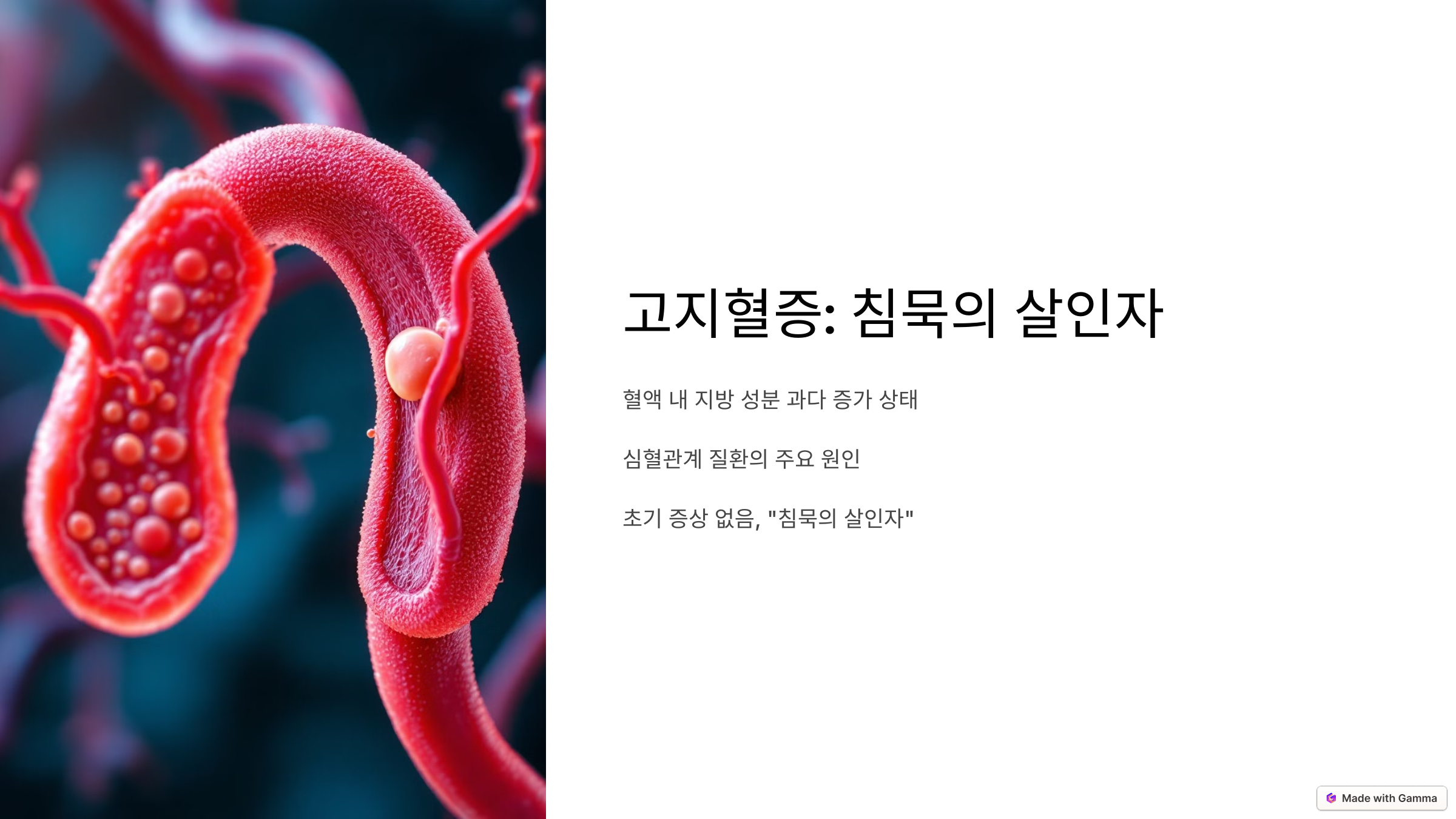 지금 바로 가까운 병원에서 혈액 검사를 통해 고지혈증 여부를 확인하세요! 오늘부터 건강한 식단과 운동으로 당신의 심혈관 건강을 지켜보세요. 💪