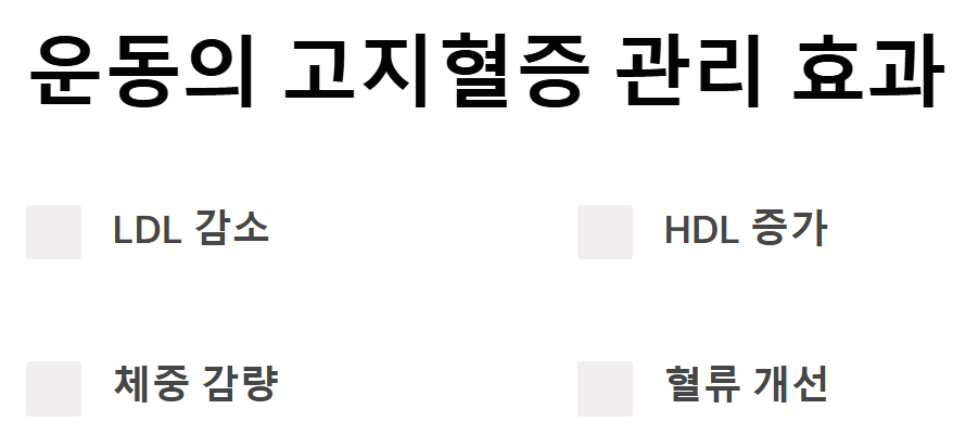 운동은 고지혈증 관리의 필수 요소입니다. 적절한 운동과 함께 건강한 식단, 규칙적인 생활습관을 유지하면 콜레스테롤 수치를 효과적으로 관리할 수 있습니다. 자신의 건강을 지키는 데 있어 작은 변화가 큰 차이를 만듭니다. 오늘부터 실천해보세요! 💚