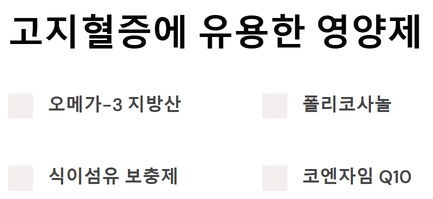 고지혈증은 혈중 콜레스테롤이나 중성지방 수치가 높아 심혈관 질환 위험을 증가시키는 상태입니다. 적절한 영양제는 생활습관 개선과 더불어 고지혈증 관리에 큰 도움을 줄 수 있습니다. 오늘은 고지혈증 환자를 위한 영양제를 추천하고 그 효과에 대해 알아보겠습니다.