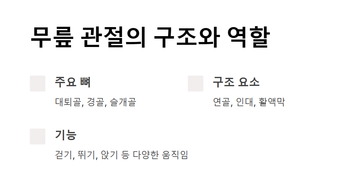 - 활액막: 관절 내부를 윤활해 부드럽게 움직임