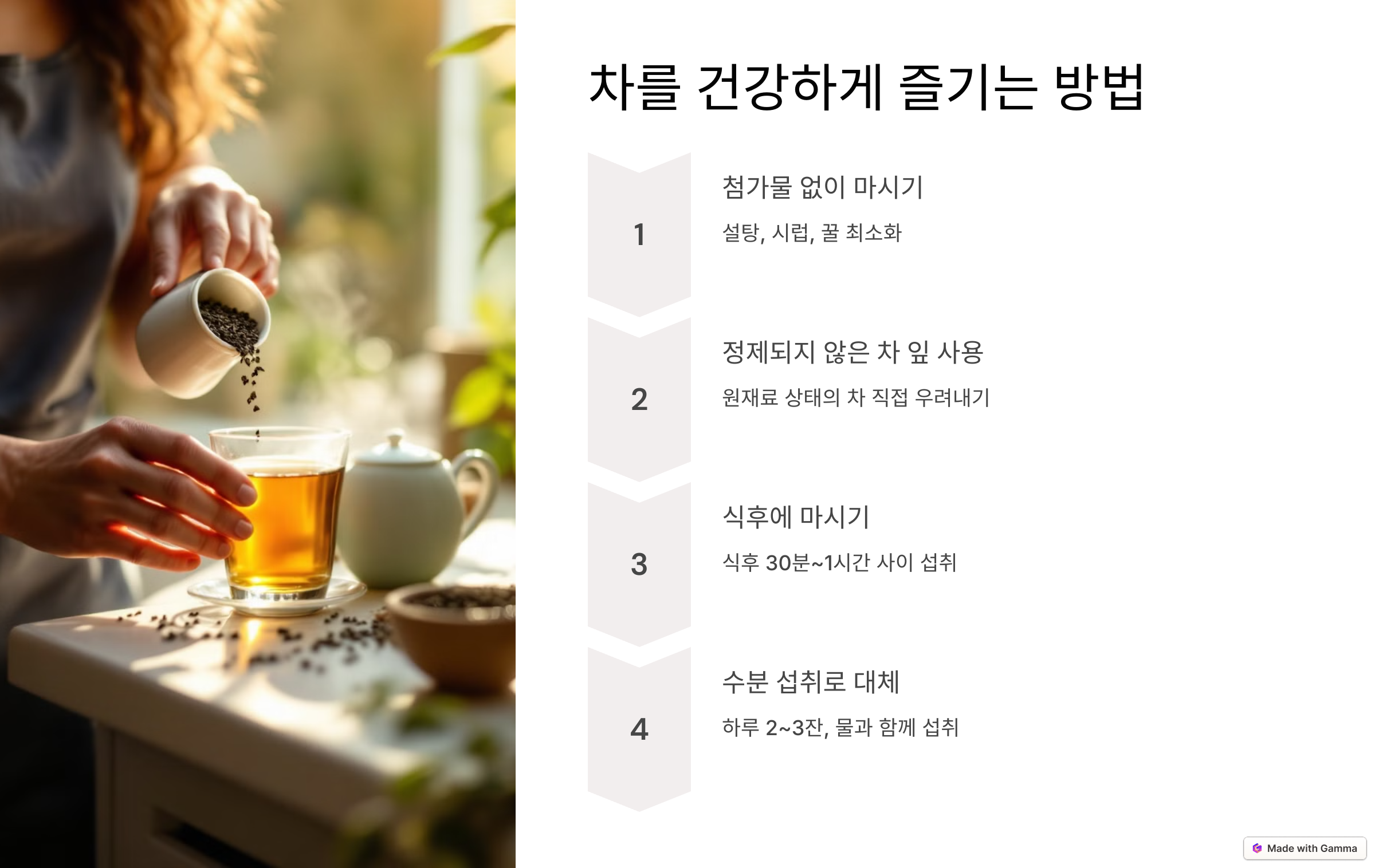 🎯 차를 건강하게 즐기는 방법
