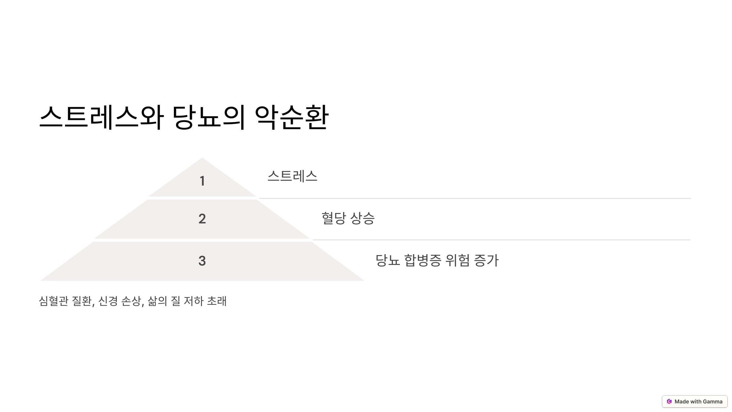 스트레스 → 혈당 상승 → 당뇨 합병증 위험 증가