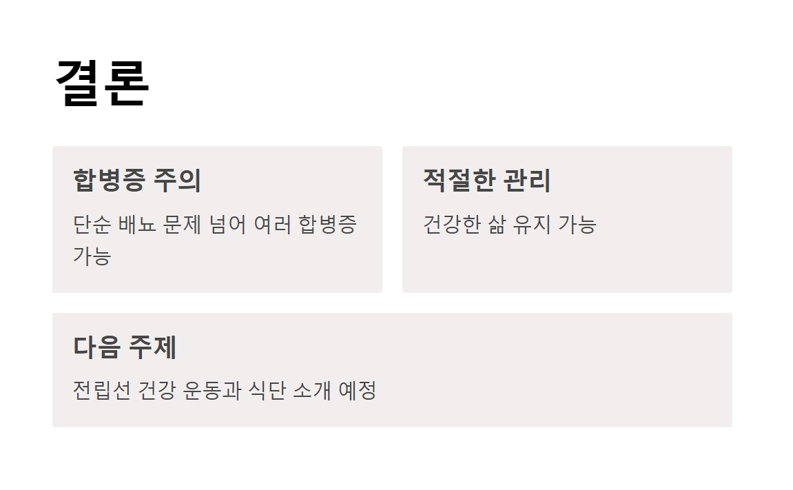 전립선 비대증은 단순한 배뇨 문제를 넘어 여러 합병증으로 이어질 수 있는 질환입니다. 하지만 적절한 관리와 치료를 통해 건강한 삶을 유지할 수 있습니다. 다음 글에서는 전립선 건강을 지키는 운동과 식단을 소개해드릴게요! 💪