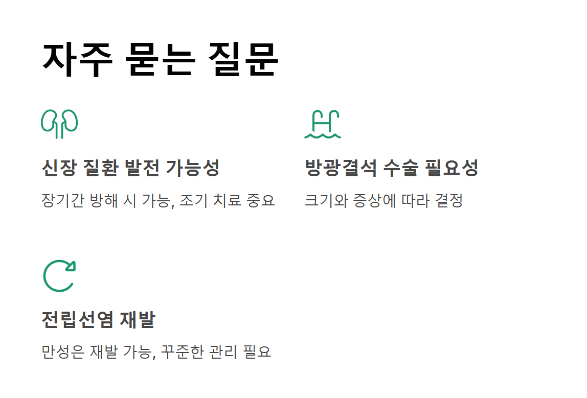 규칙적인 배뇨 습관과 충분한 수분 섭취, 그리고 전립선 비대증 치료가 재발을 막는 데 도움을 줍니다.