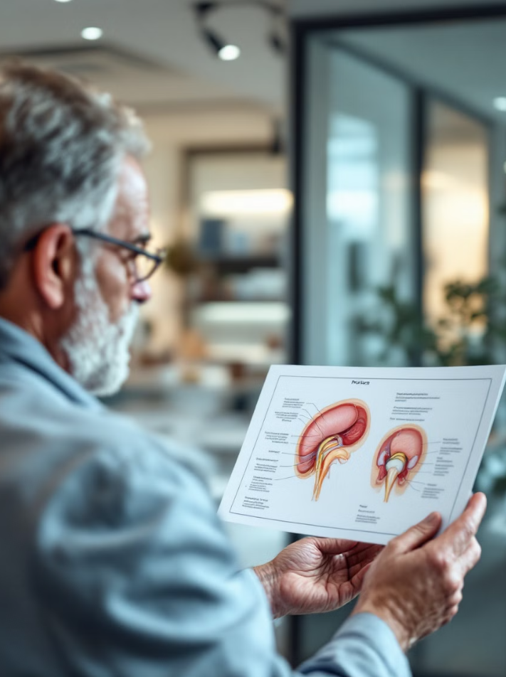 심한 전립선 비대증으로 인해 소변 배출이 장기간 방해되면 신장 질환으로 이어질 가능성이 있습니다. 조기 치료가 중요합니다.